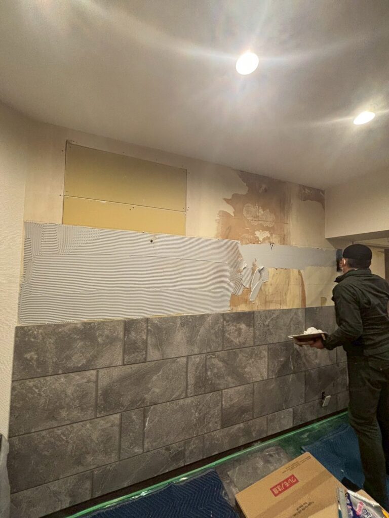アクセント壁はタイル施工を行いました。